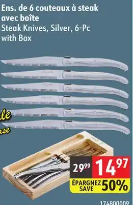 This promotion is available in various stores, view all products to get the cheapest Steak Knives, Silver, 6-Pc with Box. If you'd like to find out whether this product has a bigger discount in another store, check the category 'Grocery'. You may also find these offers interesting: OSTER Set of steak knives, Taping Knives & 10 in. Taping Knives.