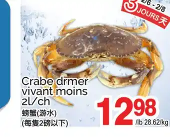 CRABE DRMER VIVANT MOINS 2L/CH discount at T&T Supermarket