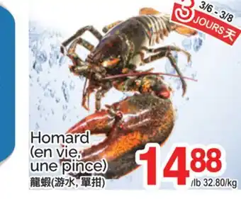 Now on sale at T&T Supermarket: HOMARD (EN VIE UNE PINCE) ✅ Valid from 6-03 to 8-03.