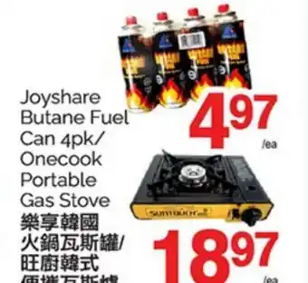 Joyshare Butane Fuel Can 4pk/Onecook Portable Gas Stove promotion at T&T Supermarket