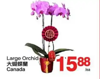 This LARGE ORCHID is now on sale at T&T Supermarket. Check the current selection filled with great deals and discounts. Purchase LARGE ORCHID online via T&T Supermarket website or get it at the best available price in person. Flyerdeals.ca gathers the best LARGE ORCHID promotions for you. Click on the bell icon to receive a free notification when this product is on sale again.LARGE ORCHID promotions for next week