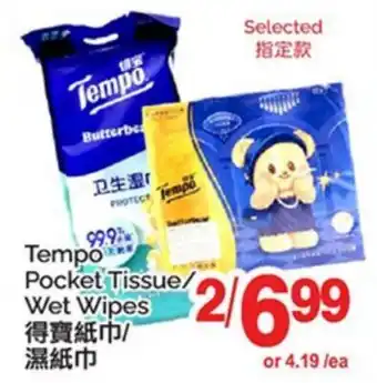 TEMPO POCKET TISSUE/WET WIPES offer at T&T Supermarket