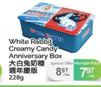 This WHITE RABBIT CREAMY CANDY ANNIVERSARY BOX is now on sale at T&T Supermarket. Check the current selection filled with great deals and discounts. Purchase WHITE RABBIT CREAMY CANDY ANNIVERSARY BOX online via T&T Supermarket website or get it at the best available price in person. Flyerdeals.ca gathers the best WHITE RABBIT CREAMY CANDY ANNIVERSARY BOX promotions for you. Click on the bell icon to receive a free notification when this product is on sale again.WHITE RABBIT CREAMY CANDY ANNIVERSARY BOX promotions for next week