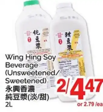 T&T Supermarket offers a wide collection of products, besides the WING HING SOY BEVERAGE. Keep an eye on the weekly T&T Supermarket flyer to find the best offers and promotions. Besides WING HING SOY BEVERAGE, you can also find the following offers: Wing Hing Soy Beverage, WING HING FRESH SOFT TOFU & EARTH'S OWN ALMOND OR SOY NON DAIRY BEVERAGE, 1.75/1.