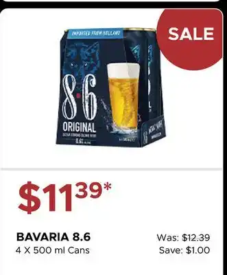 The BAVARIA 8.6 is available this week at The Beer Store with a valuable discount. On this page, you will find details about the current promotional price, the promotion terms, and any special discounts. You can also explore other related deals and promotions for BAVARIA 8.6 to make sure you get the best value.