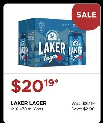 This promotion is available in various stores, view all products to get the cheapest LAKER LAGER. If you'd like to find out whether this product has a bigger discount in another store, check the category 'Restaurants'. You may also find these offers interesting: BEAU'S LUG LITE LAGER, Coors Light Lager 12x473 mL Cans & Sleeman Clear 2.0 Light Lager 6x473 mL Tall Cans.