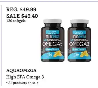 The AQUAOMEGA High EPA Omega 3 is available this week at The Big Carrot with a valuable discount. On this page, you will find details about the current promotional price, the promotion terms, and any special discounts. You can also explore other related deals and promotions for AQUAOMEGA High EPA Omega 3 to make sure you get the best value.