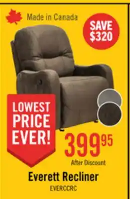 The price of Made in Canada Everett 33.5 Fabric Reclining Chair - Chocolate Brown can be found at the top of the page, together with the dates during which the offer is available. You can also check the price in the current The Brick flyer or on the The Brick website. Promotional offers assure you of buying The Brick products at the lowest price.
