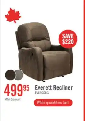 The price of Made in Canada Everett 33.5 Fabric Reclining Chair - Chocolate Brown can be found at the top of the page, together with the dates during which the offer is available. You can also check the price in the current The Brick flyer or on the The Brick website. Promotional offers assure you of buying The Brick products at the lowest price.