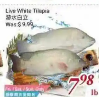 This Live White Tilapia is now on sale at Tone Tai Supermarket. Check the current selection filled with great deals and discounts. Purchase Live White Tilapia online via Tone Tai Supermarket website or get it at the best available price in person. Flyerdeals.ca gathers the best Live White Tilapia promotions for you. Click on the bell icon to receive a free notification when this product is on sale again.Live White Tilapia promotions for next week