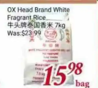 This promotion is available in various stores, view all products to get the cheapest OX Head Brand White Fragrant Rice. If you'd like to find out whether this product has a bigger discount in another store, check the category 'Grocery'. You may also find these offers interesting: ROSE BRAND Jasmine Scented Rice, Fresh White Shrimp Head On & FRESH WHITE SHRIMP WITH HEAD.