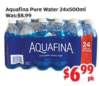 This promotion is available in various stores, view all products to get the cheapest Aquafina Pure Water. If you'd like to find out whether this product has a bigger discount in another store, check the category 'Grocery'. You may also find these offers interesting: Aquafina Water, Aquafina Demineralized Water 24x500ml or Evian 6x500ml & PURE LEAF ICED TEA (547mL), GATORADE SPORT DRINK (828mL) or ALKALINE WATER (700mL - 1L).