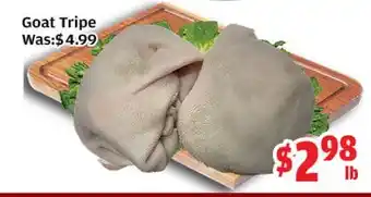 This promotion is available in various stores, view all products to get the cheapest Goat Tripe. If you'd like to find out whether this product has a bigger discount in another store, check the category 'Grocery'. You may also find these offers interesting: Fresh or Frozen Goat Tripe, TRIPE DE MOUTON & Beef Tripe.