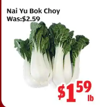 This promotion is available in various stores, view all products to get the cheapest Nai Yu Bok Choy. If you'd like to find out whether this product has a bigger discount in another store, check the category 'Grocery'. You may also find these offers interesting: Nai Yu Bok Choy, Nai Yu Bok Choy & YU CHOY.