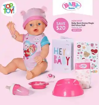 Now on sale at Toys R us: Baby Born Emma Magic Girl 43cm Doll ✅ Valid from 18-12 to 24-12.