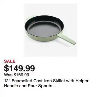 This promotion is available in various stores, view all products to get the cheapest 12 Enamelled Cast-Iron Skillet with Helper Handle and Pour Spouts (pistachio). If you'd like to find out whether this product has a bigger discount in another store, check the category 'Department Stores'. You may also find these offers interesting: JASPER Glossy Cast Iron Enamelled Cookware Collection, 2.5-Quart Enamelled Cast Iron Au Gratin Roasting Pan & 10 in. Cast-Iron Pan.