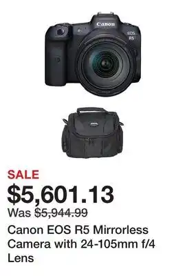 Current Canon EOS R5 Mirrorless Camera with 24-105mm f/4 Lens deal at TSC Stores from 5-03 until 11-03.