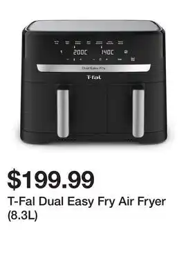 This promotion is available in various stores, view all products to get the cheapest T-Fal Dual Easy Fry Air Fryer (8.3L). If you'd like to find out whether this product has a bigger discount in another store, check the category 'Department Stores'. You may also find these offers interesting: Dual Basket Air Fryer, Ninja FOODi dual air fryer & T-fal Infrared Air Fryer, 7-in-1, 5 L (5.3 qt.) Infra-Heat Technology, Black.