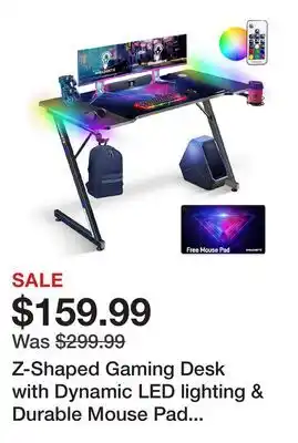 Z-Shaped Gaming Desk with Dynamic LED lighting & Durable Mouse Pad | 47x24 Carbon Fiber discount at TSC Stores
