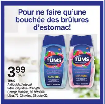 This TUMS Antiacide/Antacid is now on sale at Uniprix. Check the current selection filled with great deals and discounts. Purchase TUMS Antiacide/Antacid online via Uniprix website or get it at the best available price in person. Flyerdeals.ca gathers the best TUMS Antiacide/Antacid promotions for you. Click on the bell icon to receive a free notification when this product is on sale again.TUMS Antiacide/Antacid promotions for next week