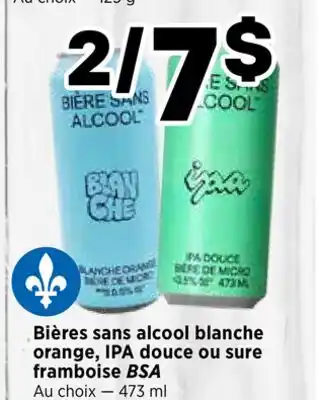 Bières sans alcool blanche orange, IPA douce ou sure framboise BSA promotion at Val-Mont
