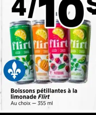 This promotion is available in various stores, view all products to get the cheapest Boissons pétillantes à la limonade Flirt. If you'd like to find out whether this product has a bigger discount in another store, check the category 'Grocery'. You may also find these offers interesting: LIMONADE PÉTILLANTE FLIRT | FLIRT SPARKLING LEMONADE, BOISSONS GAZEUSES & BOISSONS À L'ALOÈS.
