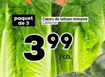 This promotion is available in various stores, view all products to get the cheapest Cœurs de laitues romaine California. If you'd like to find out whether this product has a bigger discount in another store, check the category 'Grocery'. You may also find these offers interesting: Cœurs de laitues romaine Californie, Laitues Coeurs de Romaine | Romaine Heart's Lettuce & Laitues coeurs de romaine | romaine heart's lettuce.