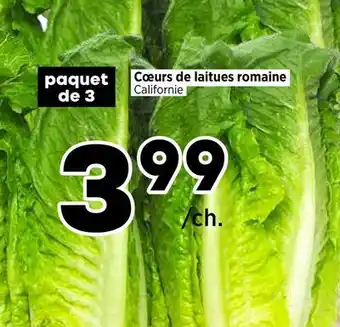 This promotion is available in various stores, view all products to get the cheapest Cœurs de laitues romaine Californie. If you'd like to find out whether this product has a bigger discount in another store, check the category 'Grocery'. You may also find these offers interesting: Laitues Coeurs de Romaine | Romaine Heart's Lettuce, LAITUES COEURS DE ROMAINE | ROMAINE HEART'S LETTUCE & COEURS DE LAITUE ROMAINE | ROMAINE HEARTS.