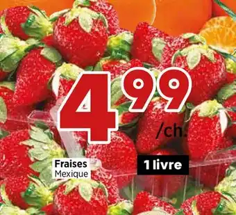 This promotion is available in various stores, view all products to get the cheapest Fraises. If you'd like to find out whether this product has a bigger discount in another store, check the category 'Grocery'. You may also find these offers interesting: FRAISES | STRAWBERRIES, FRAISES NATURELLEMENT IMPARFAITS SANS NOM , 340 g & MMK CHOCOLAT AUX FRAISES/ CHOCOLAT DE PRIME, 52G,56G.