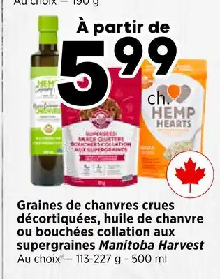 Graines de chèvre cru décorquillées, huile de chèvre cru, supergraínas Manitoba Harvest offer at Val-Mont