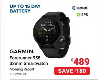 This Forerunner 955 33mm Smartwatch Morning Report promotion is valid in week 01. If it has expired, you can still view other available offers. Following the product category will keep you updated whenever Forerunner 955 33mm Smartwatch Morning Report is on sale again at Visions Electronics as part of a new promotion or discount.