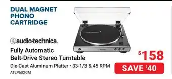 Visions Electronics offers a wide collection of products, besides the Fully Automatic Belt-Drive Stereo Turntable. Keep an eye on the weekly Visions Electronics flyer to find the best offers and promotions. Besides Fully Automatic Belt-Drive Stereo Turntable, you can also find the following offers: TECHNICA Fully Automatic Belt-Drive Turntable, ATLP60XGM AUDIO-TECHNICA Fully Auto Belt-Drive Stereo Turntable & ATLP3XBTW/B AUDIO-TECHNICA Fully Auto Belt-Drive Stereo Turntable.