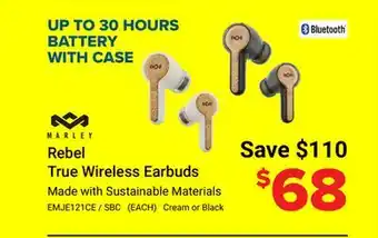 This promotion is available in various stores, view all products to get the cheapest Marley Rebel True Wireless Earbuds. If you'd like to find out whether this product has a bigger discount in another store, check the category 'Electronics'. You may also find these offers interesting: Rebel True Wireless Earbuds, ONN True Wireless Earbuds & Flex True Wireless Earbuds.