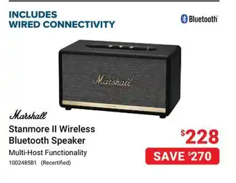 This promotion is available in various stores, view all products to get the cheapest Marshall Stanmore II Wireless Bluetooth Speaker. If you'd like to find out whether this product has a bigger discount in another store, check the category 'Electronics'. You may also find these offers interesting: ERA100B Wireless Bluetooth Smart Speaker, ERA300B/W SONOS Wireless Bluetooth Smart Speaker & 38 in. Bluetooth Tower Speaker.