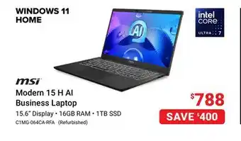 Modern 15 H AI Business Laptop promotion at Visions Electronics