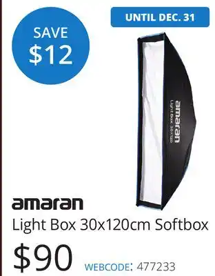 Now on sale at Vistek: Amaran Light Box 30x120cm Softbox ✅ Valid from 19-12 to 31-12.
