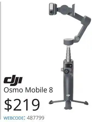 This DJI Osmo Mobile 8 is now on sale at Vistek. Check the current selection filled with great deals and discounts. Purchase DJI Osmo Mobile 8 online via Vistek website or get it at the best available price in person. Flyerdeals.ca gathers the best DJI Osmo Mobile 8 promotions for you. Click on the bell icon to receive a free notification when this product is on sale again.DJI Osmo Mobile 8 promotions for next week