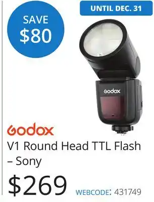 Now on sale at Vistek: V1 Round Head TTL Flash – Sony ✅ Valid from 19-12 to 31-12.