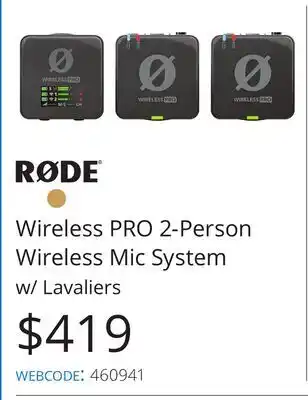Wireless PRO 2-Person Wireless Mic System w/Lavaliers promotion at Vistek