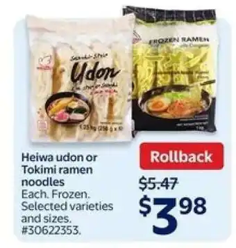 Now on sale at Walmart: Heiwa udon or Tokimi ramen noodles ✅ Valid from 8-01 to 14-01.