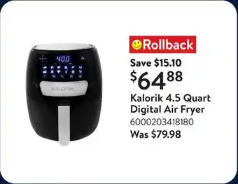 Kalorik 4.5 Quart Digital Air Fryer promotion at Walmart