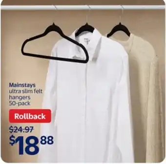Now on sale at Walmart: Mainstays ultra slim felt hangers ✅ Valid from 1-01 to 28-01.