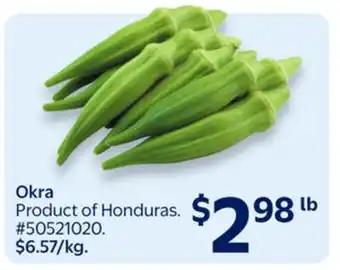 The price of Okra can be found at the top of the page, together with the dates during which the offer is available. You can also check the price in the current Walmart flyer or on the Walmart website. Promotional offers assure you of buying Walmart products at the lowest price.
