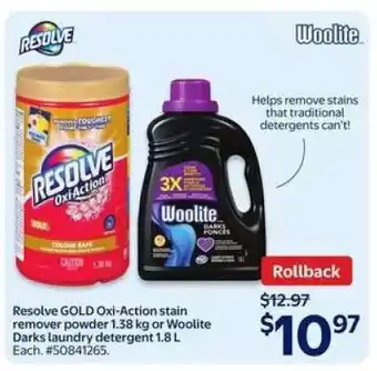 Resolve GOLD Oxi-Action stain remover powder or Woolite Darks laundry detergent promotion at Walmart