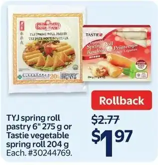 TYJ spring roll pastry 6" or Tastie vegetable spring roll promotion at Walmart