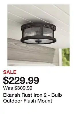 The price of Ekansh Rust Iron 2 - Bulb Outdoor Flush Mount can be found at the top of the page, together with the dates during which the offer is available. You can also check the price in the current flyer or on the Wayfair website. Promotional offers assure you of buying Wayfair products at the lowest price.