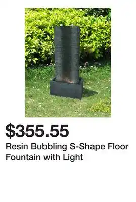 This promotion is available in various stores, view all products to get the cheapest Resin Bubbling S-Shape Floor Fountain with Light. If you'd like to find out whether this product has a bigger discount in another store, check the category 'Home and Furniture'. You may also find these offers interesting: Rorer Weather Resistant Floor Fountain with Light, Weather Resistant Fountain with Light & Barilla hear-shape pasta.