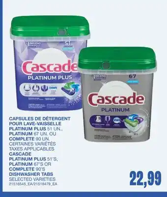 CAPSULES DE DÉTERGENT POUR LAVE-VAISSELLE PLATINUM PLUS, 51 UN., PLATINUM 67 UN. OU COMPLETE 90 UN promotion at Wholesale Club