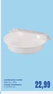 Now on sale at Wholesale Club: CONTENANTS RONDS, 650 mL, 50's ✅ Valid from 29-01 to 18-02.
