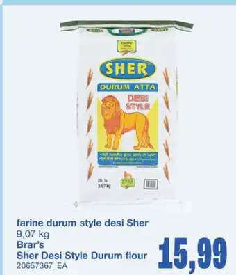 This promotion is available in various stores, view all products to get the cheapest FARINE DURUM STYLE DESI SHER. If you'd like to find out whether this product has a bigger discount in another store, check the category 'Wholesale'. You may also find these offers interesting: BRAR'S SHER DESI STYLE DURUM FLOUR, SHER DURUM ATTA & SHER BESAN.